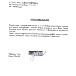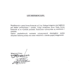 Jesteśmy zespołem osób solidnie wykształconych, a przede wszystkim doświadczonych w prowadzeniu księgowości oraz kadr i płac firm z różnych branż. Potwierdzają to dyplomy ukończonych uczelni, doświadczenie oraz posiadane certyfikaty. Ponadto posiadamy ubezpieczenie od odpowiedzialności cywilnej z tytuły świadczonych przez nas usług, zabezpieczające interesy naszych Klientów. Nasi Klienci w każdej chwili mogą liczyć na wsparcie w zakresie podejmowanych decyzji podatkowych, inwestycyjnych, kadrowych i innych. Jesteśmy stale do dyspozycji Klientów.