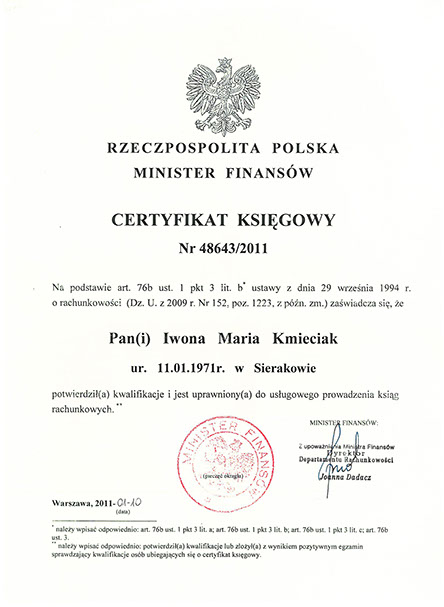 Jesteśmy zespołem osób solidnie wykształconych, a przede wszystkim doświadczonych w prowadzeniu księgowości oraz kadr i płac firm z różnych branż. Potwierdzają to dyplomy ukończonych uczelni, doświadczenie oraz posiadane certyfikaty. Ponadto posiadamy ubezpieczenie od odpowiedzialności cywilnej z tytuły świadczonych przez nas usług, zabezpieczające interesy naszych Klientów. Nasi Klienci w każdej chwili mogą liczyć na wsparcie w zakresie podejmowanych decyzji podatkowych, inwestycyjnych, kadrowych i innych. Jesteśmy stale do dyspozycji Klientów.